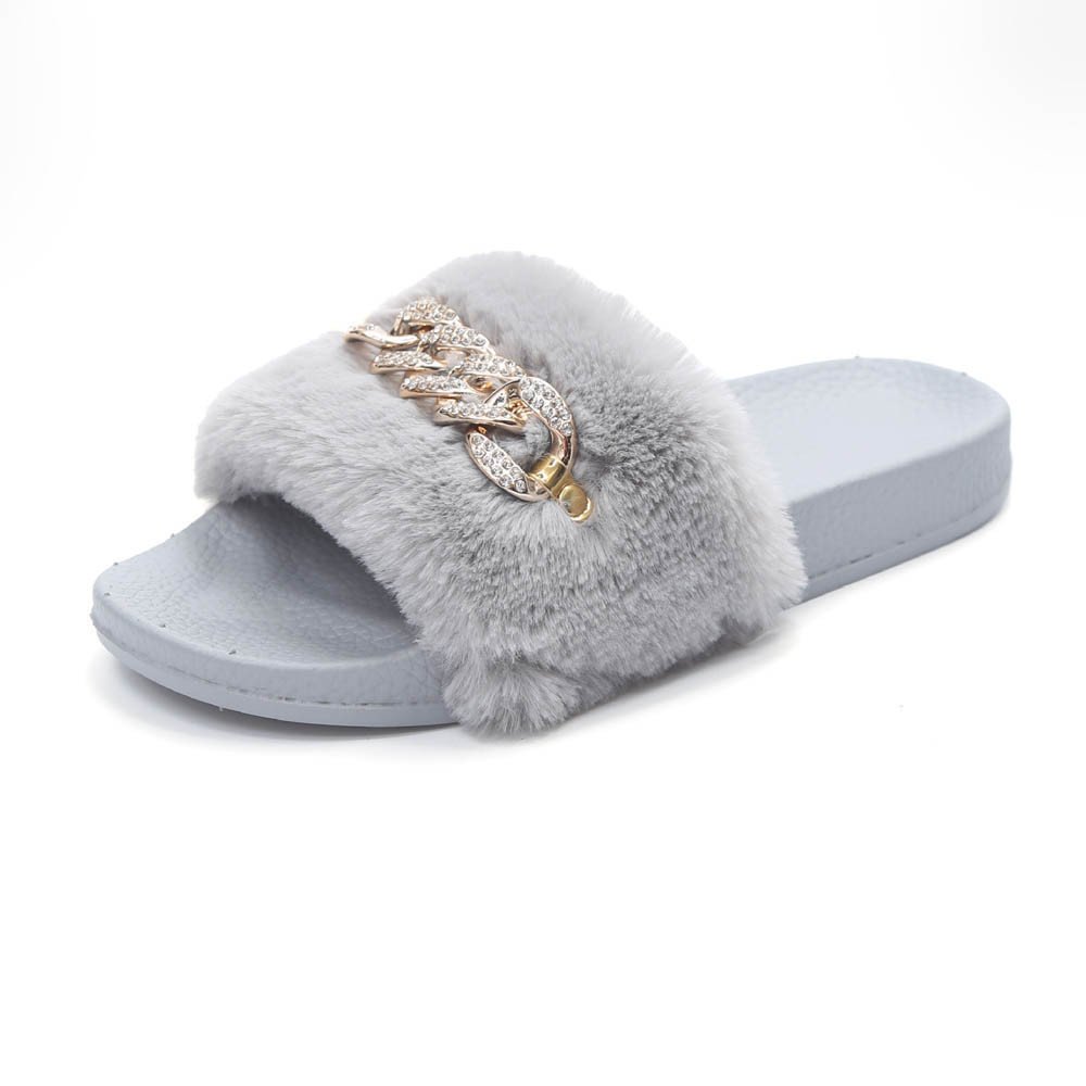 Authentic Quality Sunyastor Woman S Fur Fluffy Slipper Flip Flop Open Toe Shoes Plush Cozy House Sandal Soft Flat Indoor Outdoor Slippers Gray Clothing Cheap Moratta Ctic Com Br